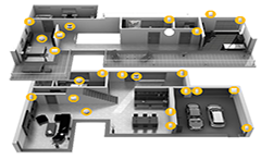 Innenräume überwacht man in der Regel mit Bewegungsmeldern, die Bewegungen mittels passiv Infrarot Detektion (PIR) oder Mikrowelle erfassen. Ein Nachteil ist, dass Sie diesen Bereich nur dann scharf schalten können, wenn sich niemand dort aufhält. Sollten Sie Haustiere besitzen, können spezielle Melder eingesetzt werden, die Tiere ausblenden.