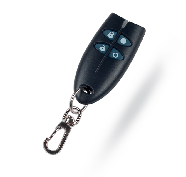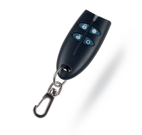 Bei diesem Handsender JA-186JK schwarz stehen zwei Tastenpaare zur Verfügung. Es können somit zwei Teilbereiche unabhängig voneinander, scharf und unscharf geschaltet werden. Das Drücken beider Tasten (eines Tastenpaares) löst einen Panikalarm aus. Die Funktion der Tastenpaare wird in der F-Link Software parametriert. Dadurch ist es möglich auch einen programmierbaren Ausgang zu steuern (z.B. Hoflicht ein und aus, Garagensteuerung, Klimaanlage…)